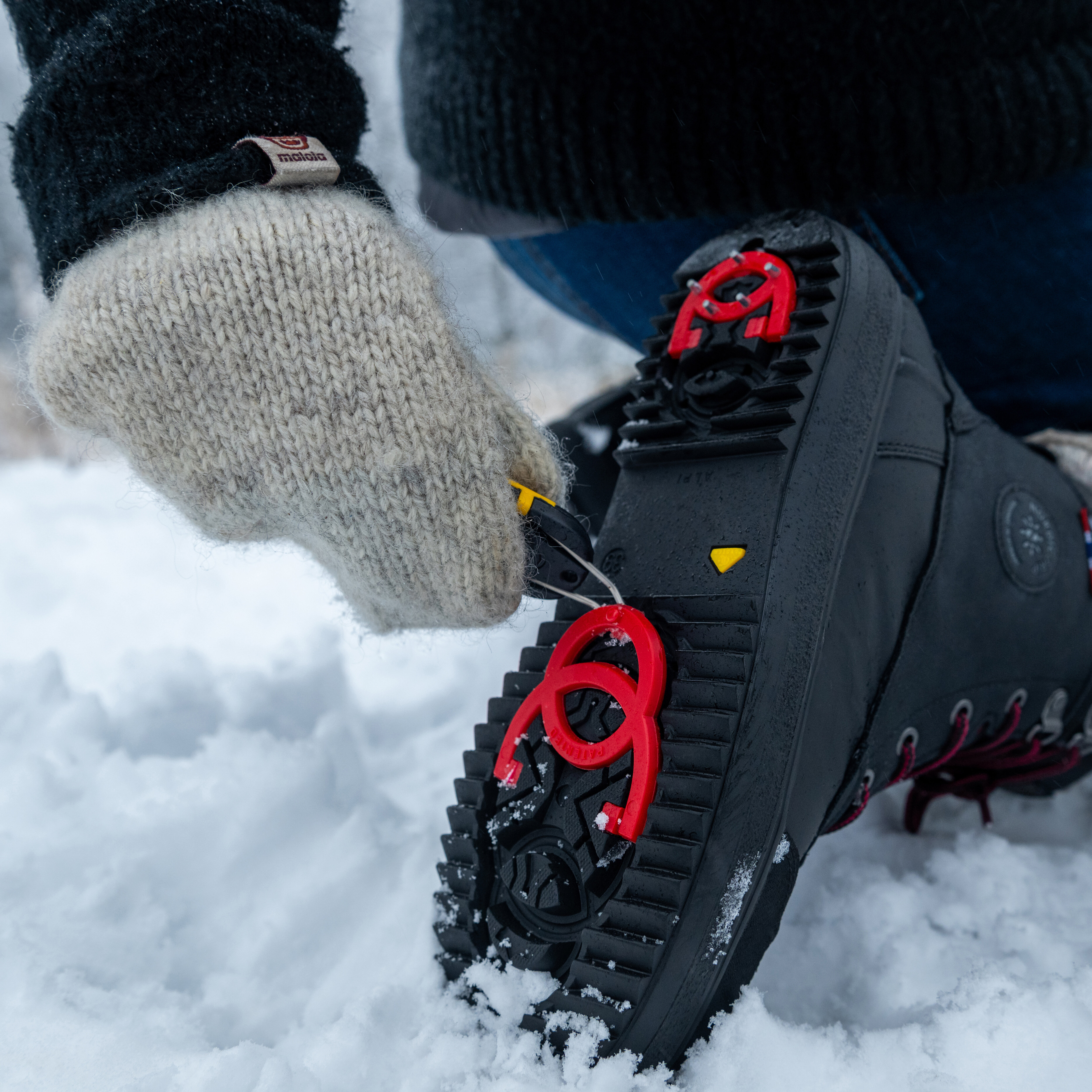 Bering er en robust og allsidig piggsko med vendbare pigger, også kjent som innfellbare brodder, utviklet for å møte vinterens strengeste utfordringer. Inspirert av Beringbreens rå styrke kombinerer modellen varme, komfort og sikkert grep i én og samme sko. Den originale Alpi-piggsålen med utfellbare pigger på både hæl og forfot gir optimalt feste på is og snø, samtidig som de vendbare piggene gjør Bering ideell som vanlig vintersko når du beveger deg mellom utendørs og innendørs miljøer, som kjøpesenter, kontor og butikk. Med ekstra høyt skaft for snørike dager, overdel i slitesterkt syntetisk nubukskinn, vanntett membran og varmt fôr med ullblanding, er Bering et trygt valg enten du ferdes i byen eller ute i naturen. Modellen er unisex og leveres i fargene svart og brun, i størrelser fra 36 til 46.